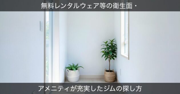 - 当トピックは「無料レンタルウェア等の衛生面・アメニティが充実したジムの探し方」について解説するガイド記事です。